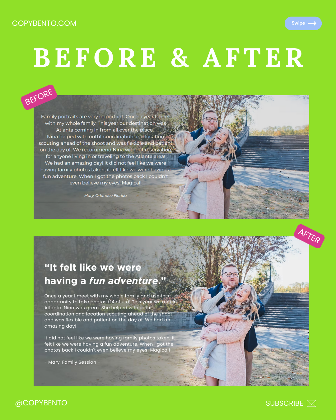 🔸Small businesses considering hiring me as their copywriter and want to see my thought process, skills, and work in action.